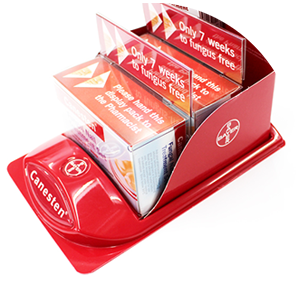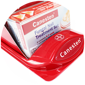 A small but powerful display helped Canesten overcome an unusual challenge to selling its Fungal Nail Treatment. In Australia pharmacies are restricted from selling products such as these off the shelf and instead must “dispense” them by instructing buyers on their correct use.